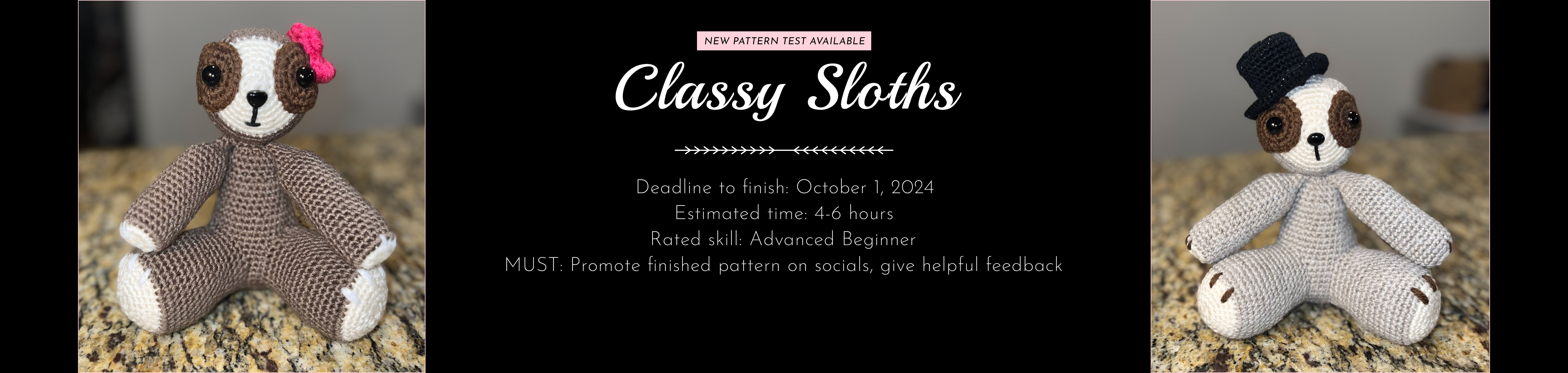 I'm seeking crochet enthusiasts, with an eye for detail, to help me perfect my designs. One-time testers will receive a free copy of the finished product for their contributions. In addition, recruited Joy Testers will be rewarded 15% off future purchases. In exchange, I'll pick your brain for feedback and honest critiques.
